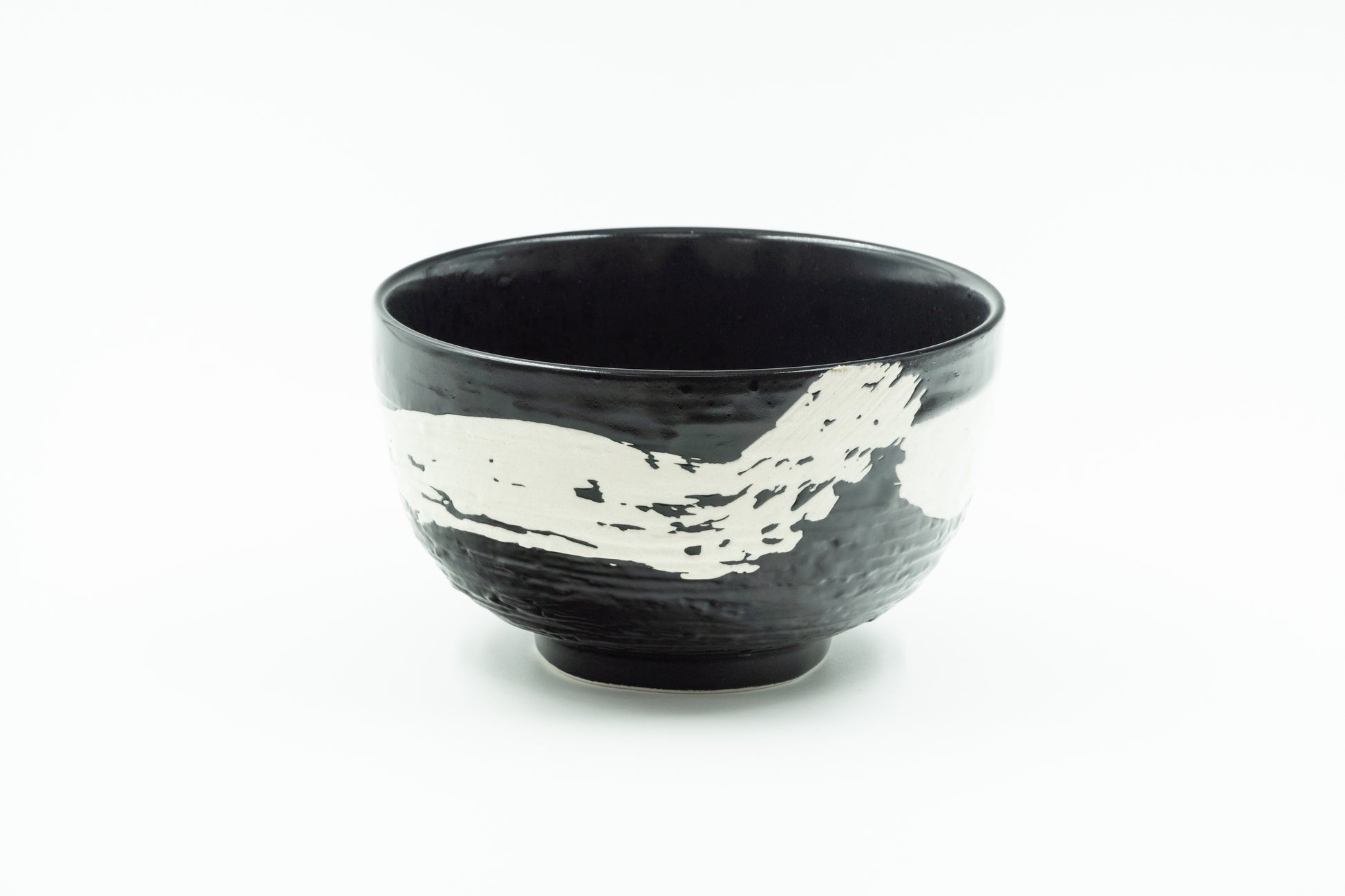 Black Udon Bowl with White Stroke. 5.5" d x 3.5"h. Made in Japan.