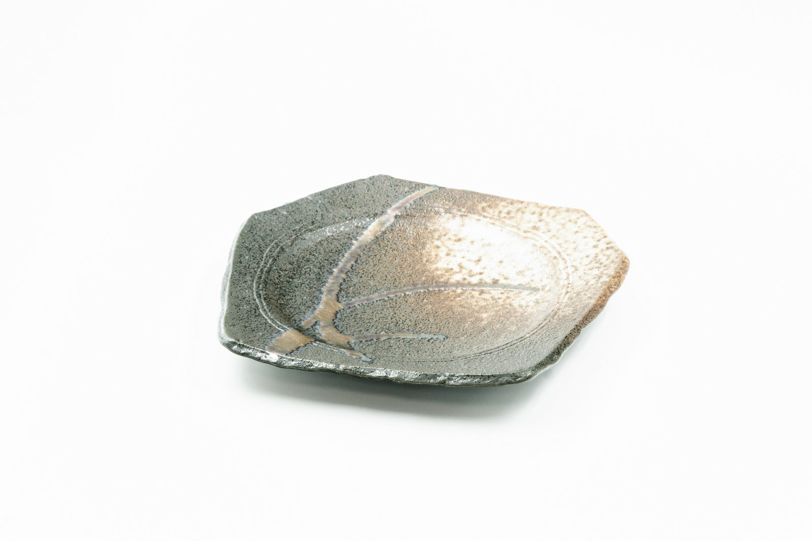 Side Plate 7"x7" Japanese Earthenware with Copper Strokes. Made in Japan