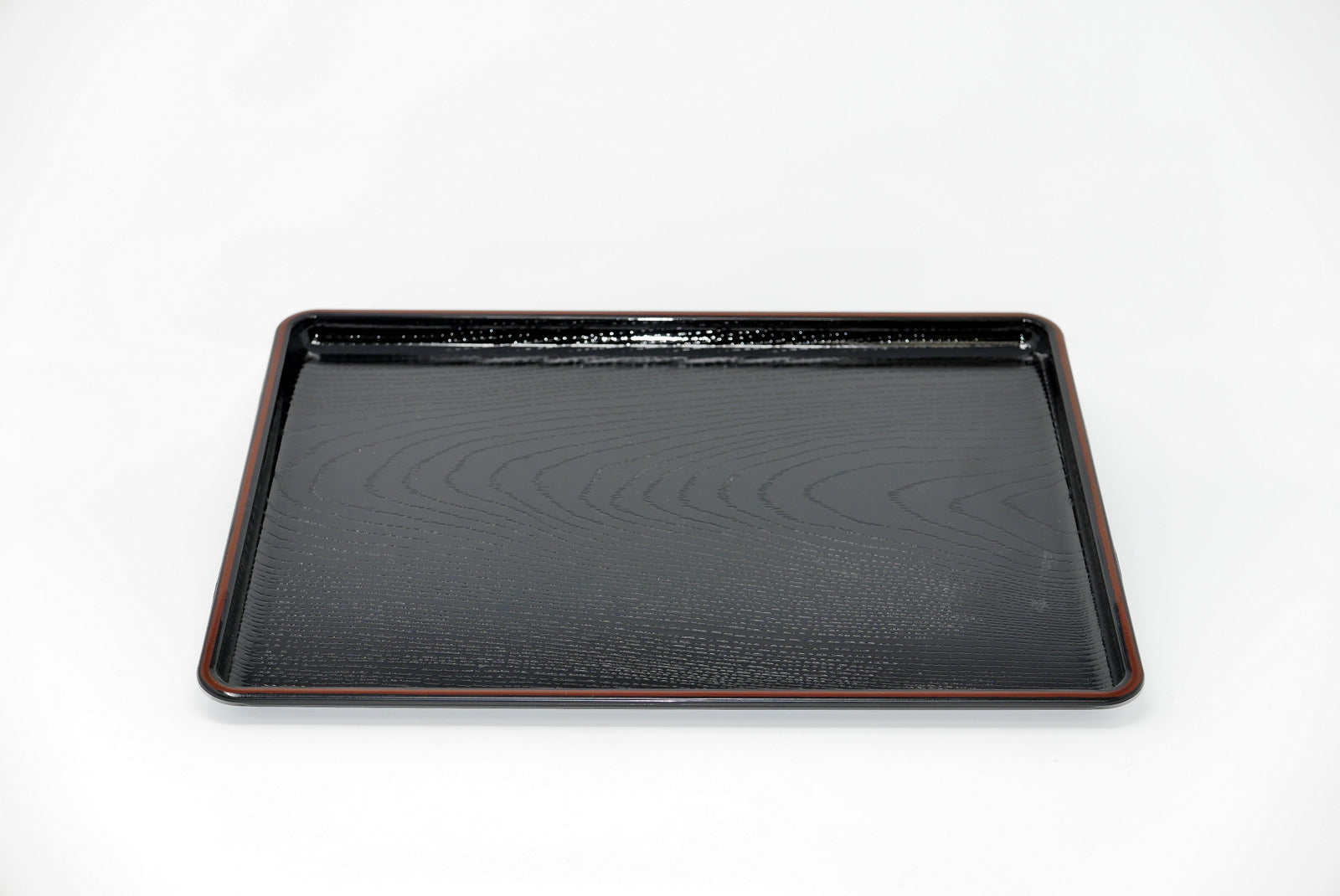 Black Tray with Woodgrain Pattern 14". Made in Japan.